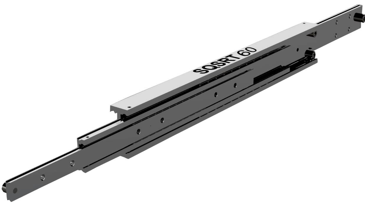 四節(jié)式伸縮導(dǎo)軌可使抽屜從閉合位置向外伸出150%行程, 1000mm的閉合長度可提供1500mm的延展行程(完全展開總長度2500mm)。SQSRT-60導(dǎo)軌被廣泛的使用于船舶電子機(jī)柜及武器搬運(yùn)系統(tǒng)。