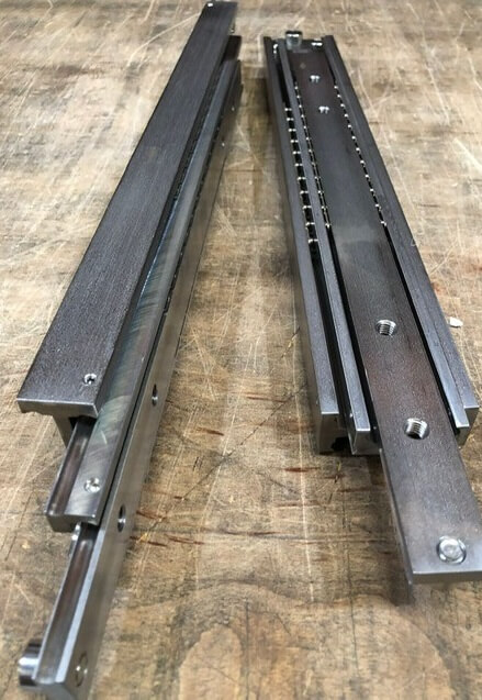 T6級的航天鋁合金滑軌本身珠軌經(jīng)過特殊精密加工處理。表面為黑色陽極硬化處理, 其他表面處理也可按需求提供。