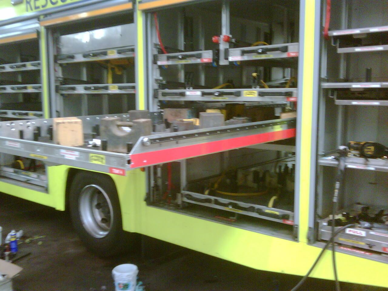 消防車輛上的器具, 設(shè)備, 零件收納系統(tǒng)。