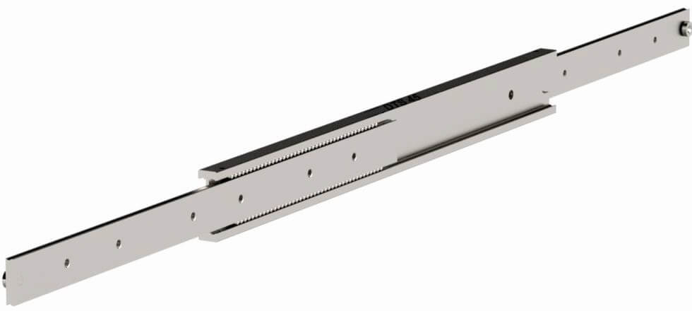 滑軌支持300mm到2000mm長度的抽屜, 延展程度從抽屜閉合長度的50%到200%, 同時也能提供雙向100%延展, 這讓消防員可以從車體的任一側(cè)快速&安全的將抽屜抽出并取得重要救援工具。
