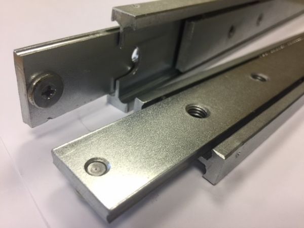 滑軌的鋼珠及珠軌必須經(jīng)過硬化處理以承受如此高的使用頻率, 一方面也避免腐蝕問題。碳鋼滑軌也表現(xiàn)較高的耐用度, 在長時間使用下碳鋼滑軌比較不易像冷軋滑軌一樣產(chǎn)生永久變形。