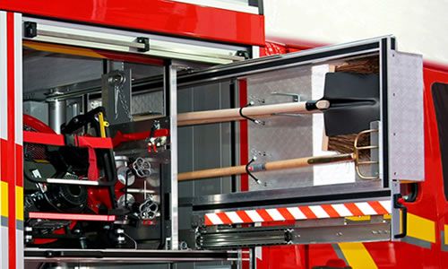 消防車輛上的器具, 設備, 零件收納系統(tǒng)。