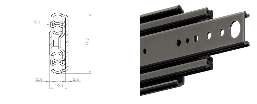 具備高彈性的制造設備, 我們可以配合廣泛的車輛設計案。碳鋼滑軌能夠勝任包含震動和沖擊的車輛應用。若是有輕量化及抗腐蝕的需求, 我們也有高強度鋁合金滑軌能夠配合(載重達到330kg)。